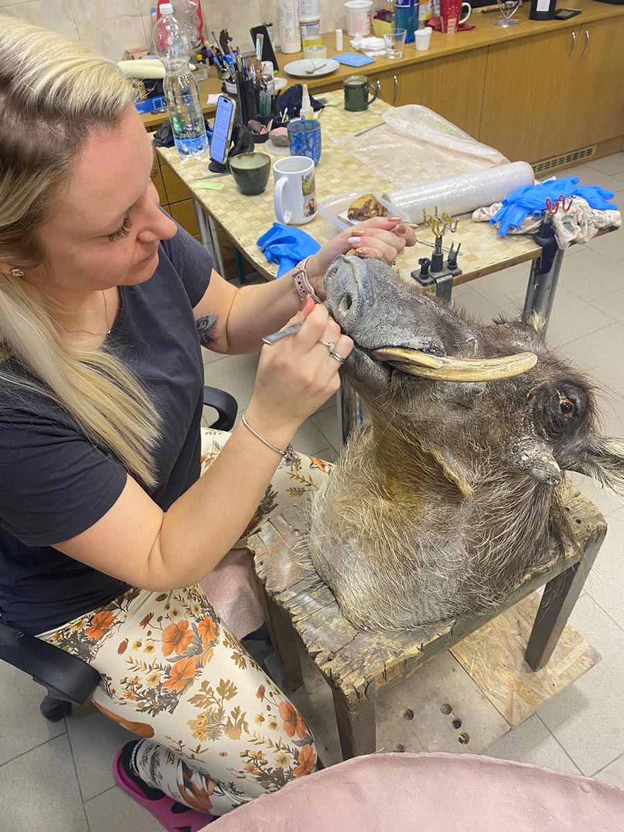 Modelace detailů, práce s barvou, opravy kůže, výraz očí, citlivé vyspravení nedokonalostí. Právě tato fáze promění dobrou preparaci ve výjimečnou.