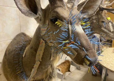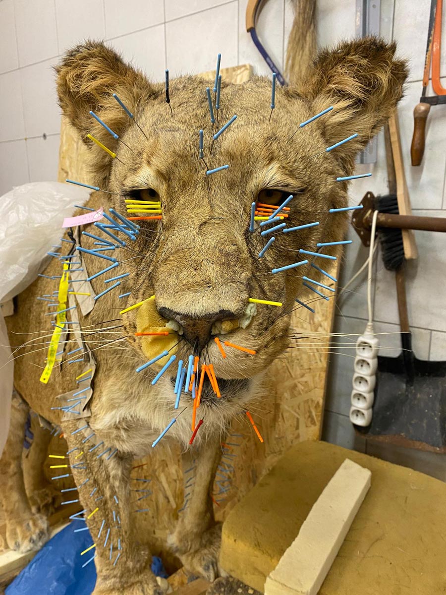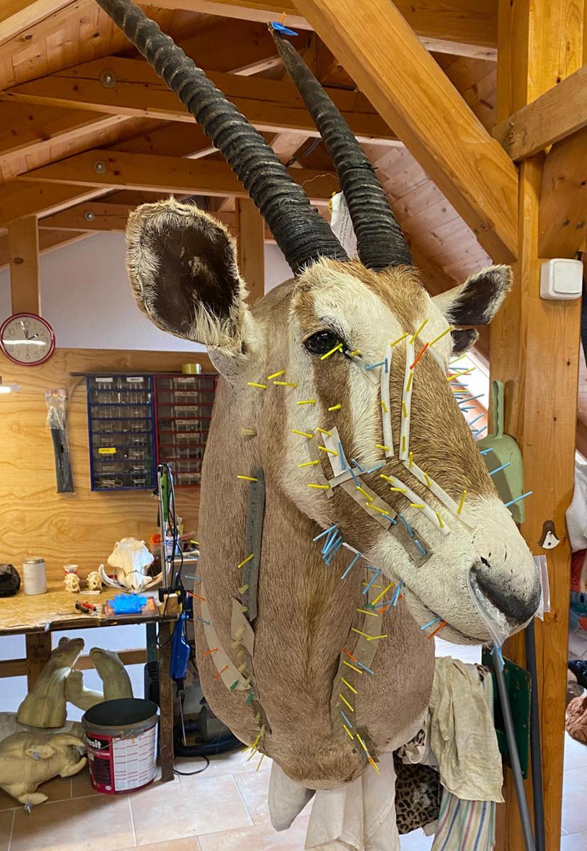 Když se někdo poprvé podívá do naší dílny, většinou ho zaujme jedna konkrétní věc: schnoucí preparáty doslova poseté desítkami až stovkami špendlíků. Vypadá to neobvykle. Někdy i trochu komicky. Ale právě tohle je jedna z nejdůležitějších fází celé práce.