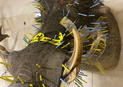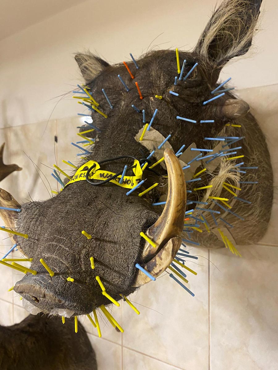 U velkých zvířat – medvěda, lva, leoparda, kudu i prasat savanových – se může počet špendlíků vyšplhat do stovek.